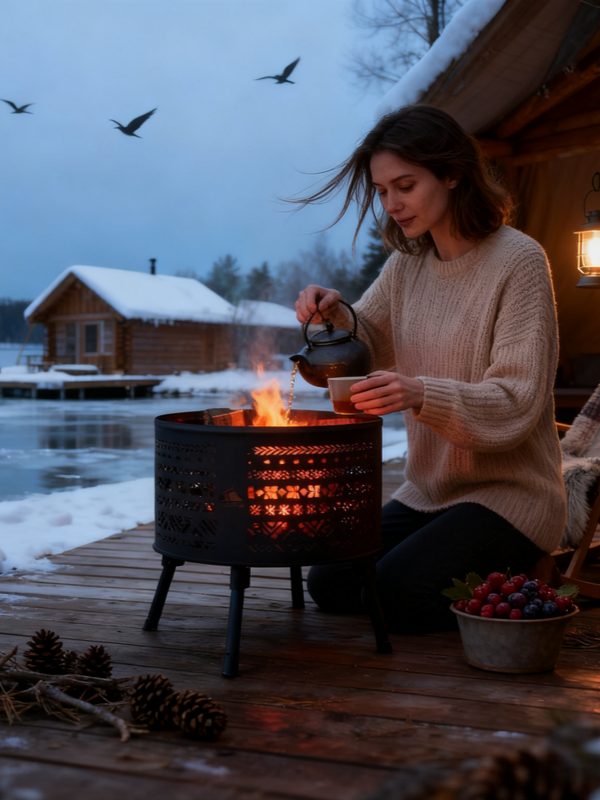 This round cutout fire pit is designed for modern outdoor living, combining beauty and practicality. It features a round open structure with delicate hollow patterns that cast beautiful light effects when burning. More than just a heating tool, it serves as an attractive decoration for patios, gardens, and campsites. Made with thick heat-resistant steel and a stable support base, it remains durable and steady for long-term use. Ideal for backyard relaxation, camping, bonfire parties, and light outdoor grilling, it creates a warm and cozy atmosphere for family time, friend gatherings, and outdoor adventures.